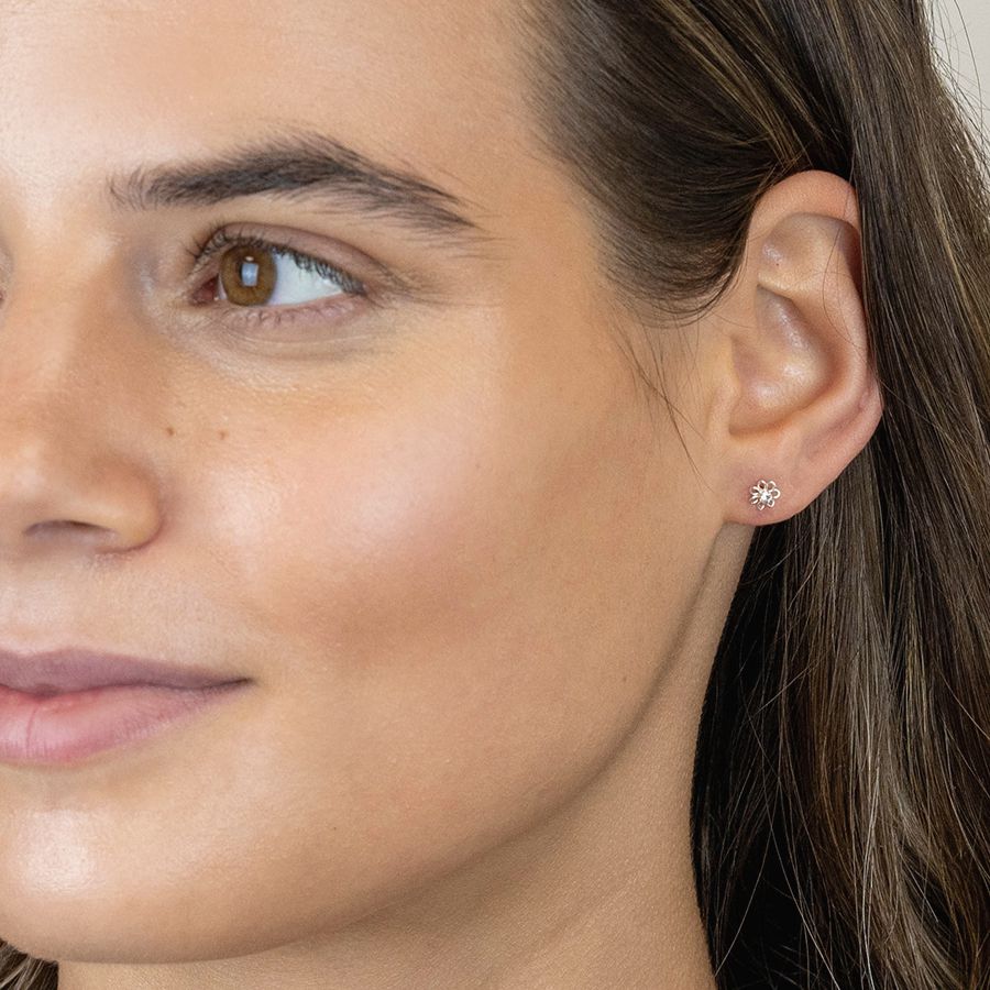 Sterling Silver Tiny Flower & Rhinestone Studs