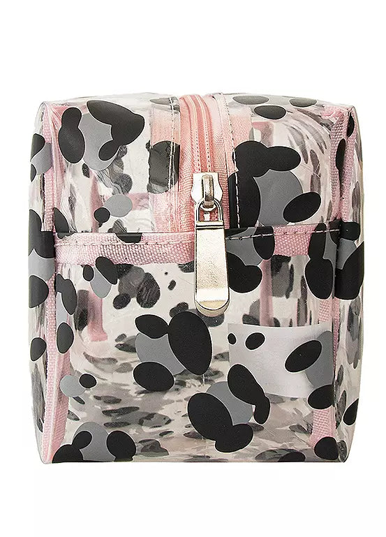 Blending old-school practicality with cute contemporary design, it’s ideal for keeping all your girlie goodies safe and sound. Made from clear, durable soft plastic in a stylish boxy shape, it’s overprinted with a grey leopard print design and finished with a matching grey trim.